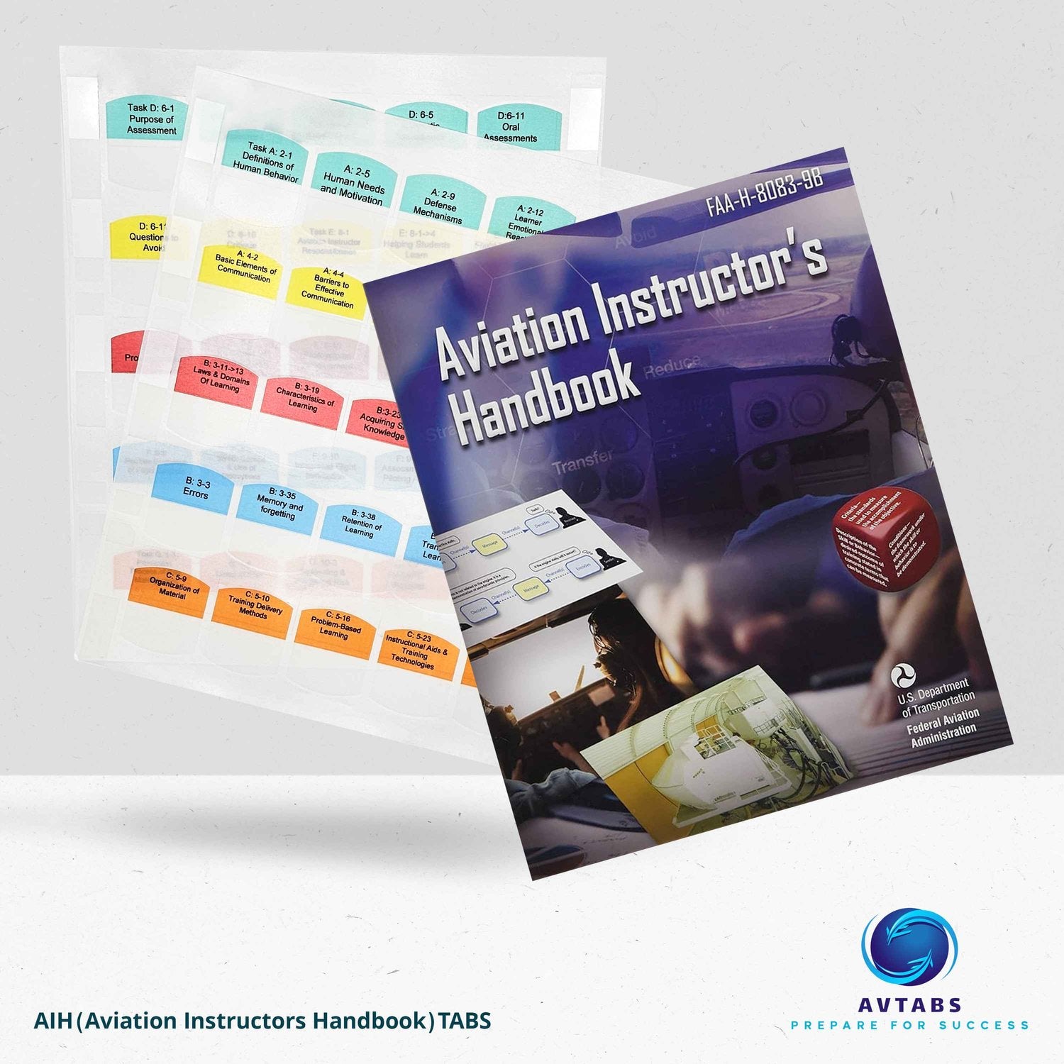 AvTabs provide color-coded and pre-labeled tabs that make finding key information within aviation handbooks faster and easier. This helps streamline study sessions, reduces the time spent flipping through pages, and allows pilots and instructors to focus on important content.