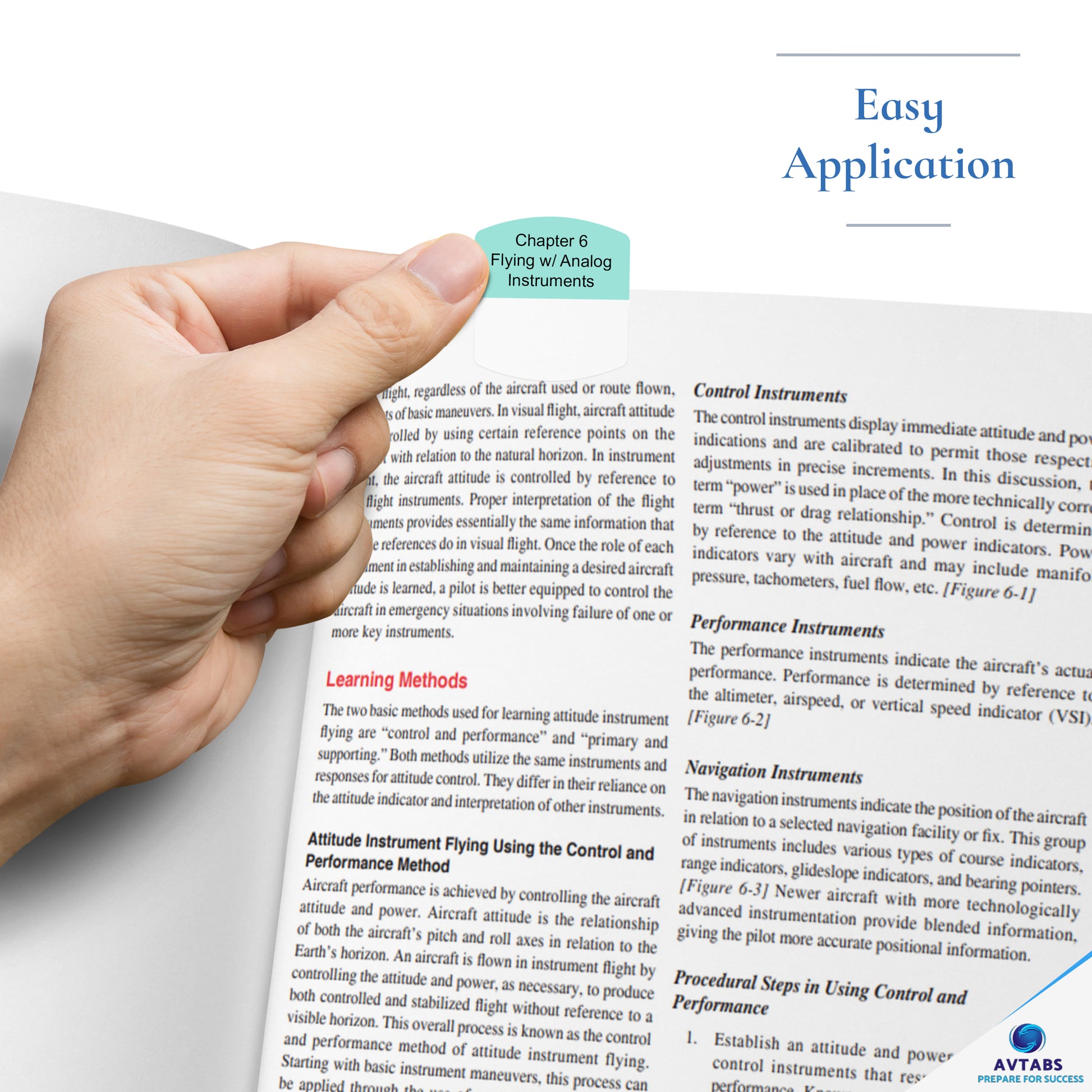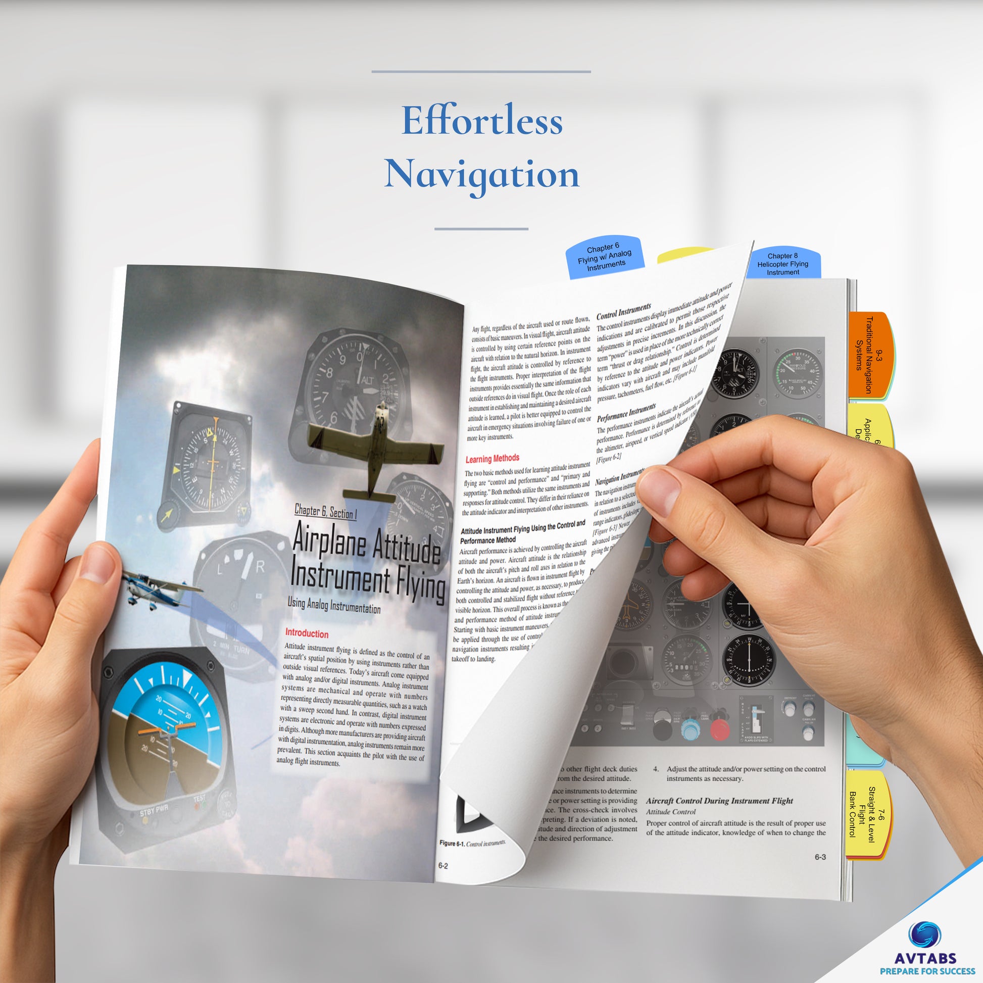 AvTabs provide color-coded and pre-labeled tabs that make finding key information within aviation handbooks faster and easier. This helps streamline study sessions, reduces the time spent flipping through pages, and allows pilots and instructors to focus on important content.